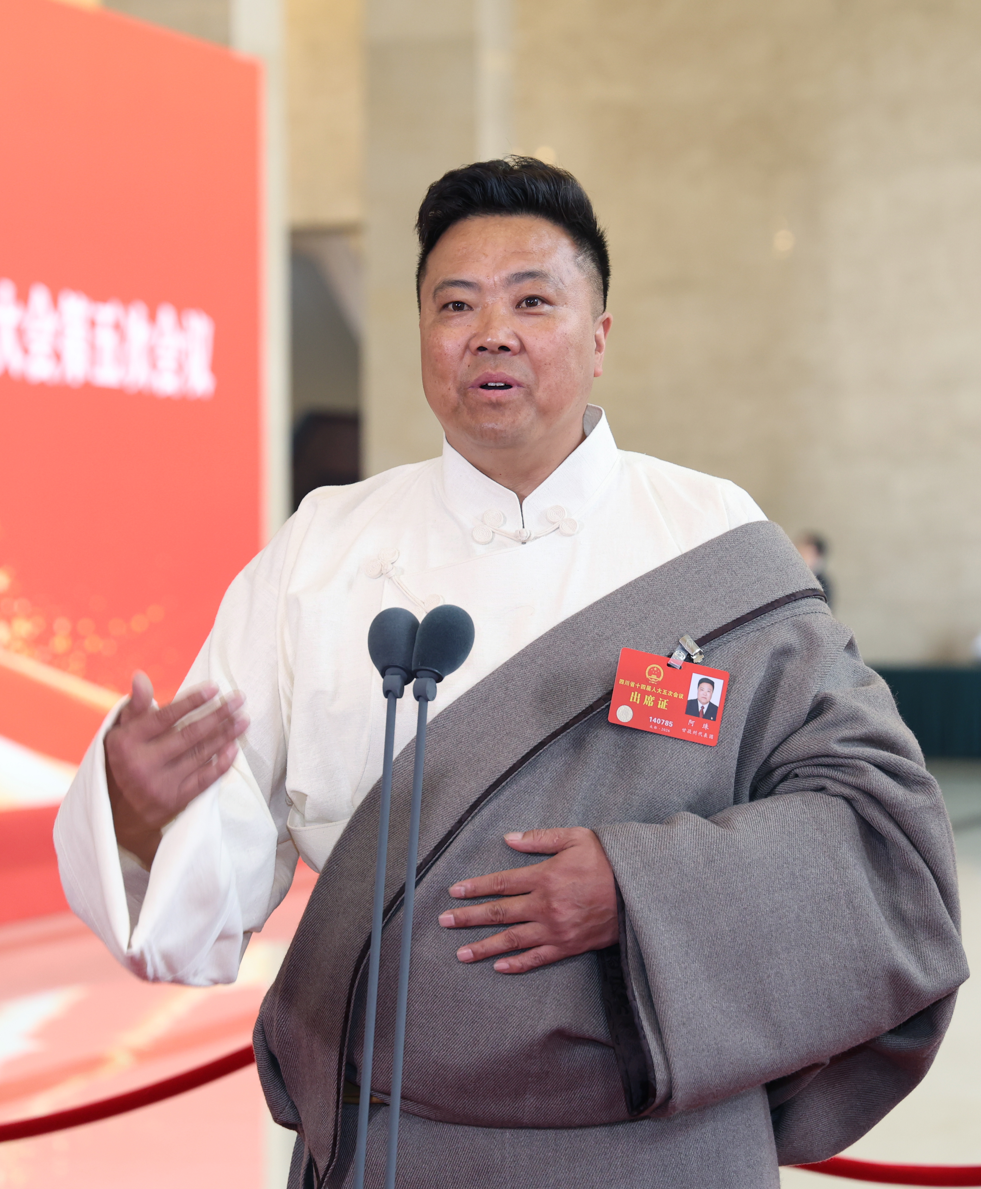 2月4日,四川省十四届人大五次会议第二场代表通道上,四川省人大代表、甘孜州色达县色柯镇党委书记阿珠用当地沙地变绿地,守护绿水青山的故事,讲出了这道“必答题”的答案。